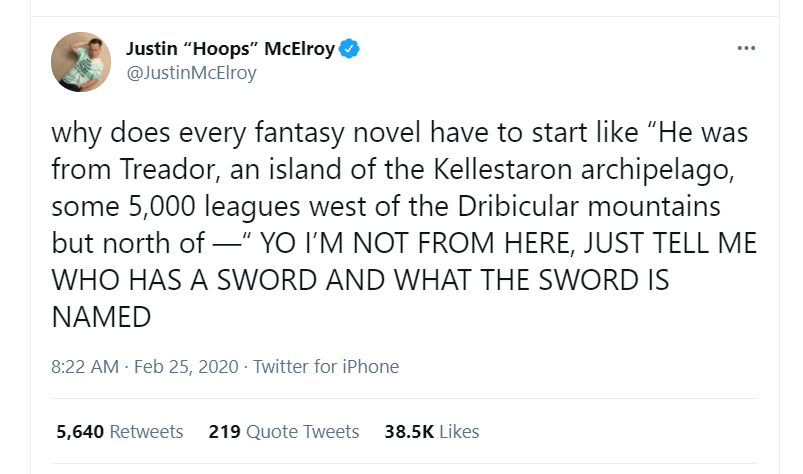 And then there’s the common issue with fantasy books that Justin McElroy so neatly summarized in this tweet: