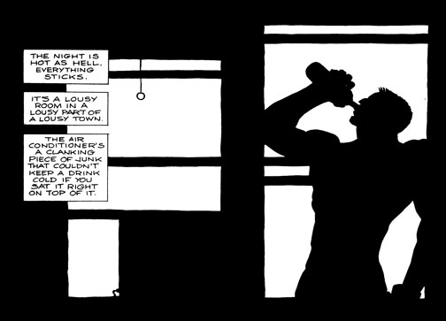 It doesn’t get more classically noir than that. Most noir mysteries are sweltering hot; sometimes they are bitter cold, but mostly roasting. Reading this issue last, I can tell that it was Frank Miller’s first (he is still finding his style for this series) and I can understand why it made such a splash in the comic book world. Everything is just so in-your-face: the violence, the machismo, the sex – I think it was probably unlike anything else people were reading at the time.
